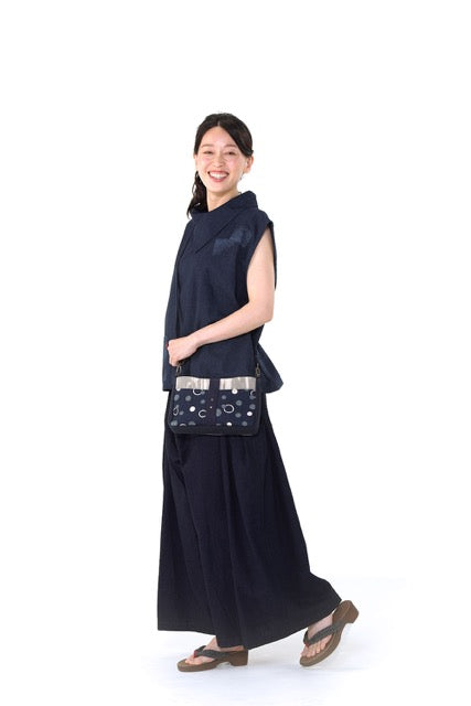 Distribution bag 100% cotton This product can change the pattern only indigo dyeing in the front pocket. I made it in collaboration with Aizen collaboration with a distribution bag craftsman in Kyoto. 2 open pockets on the front side • 1 zipper pocket on the inside 1 zipper pocket Adjustable with a shoulder strap length of 59 cm to 112 cm
